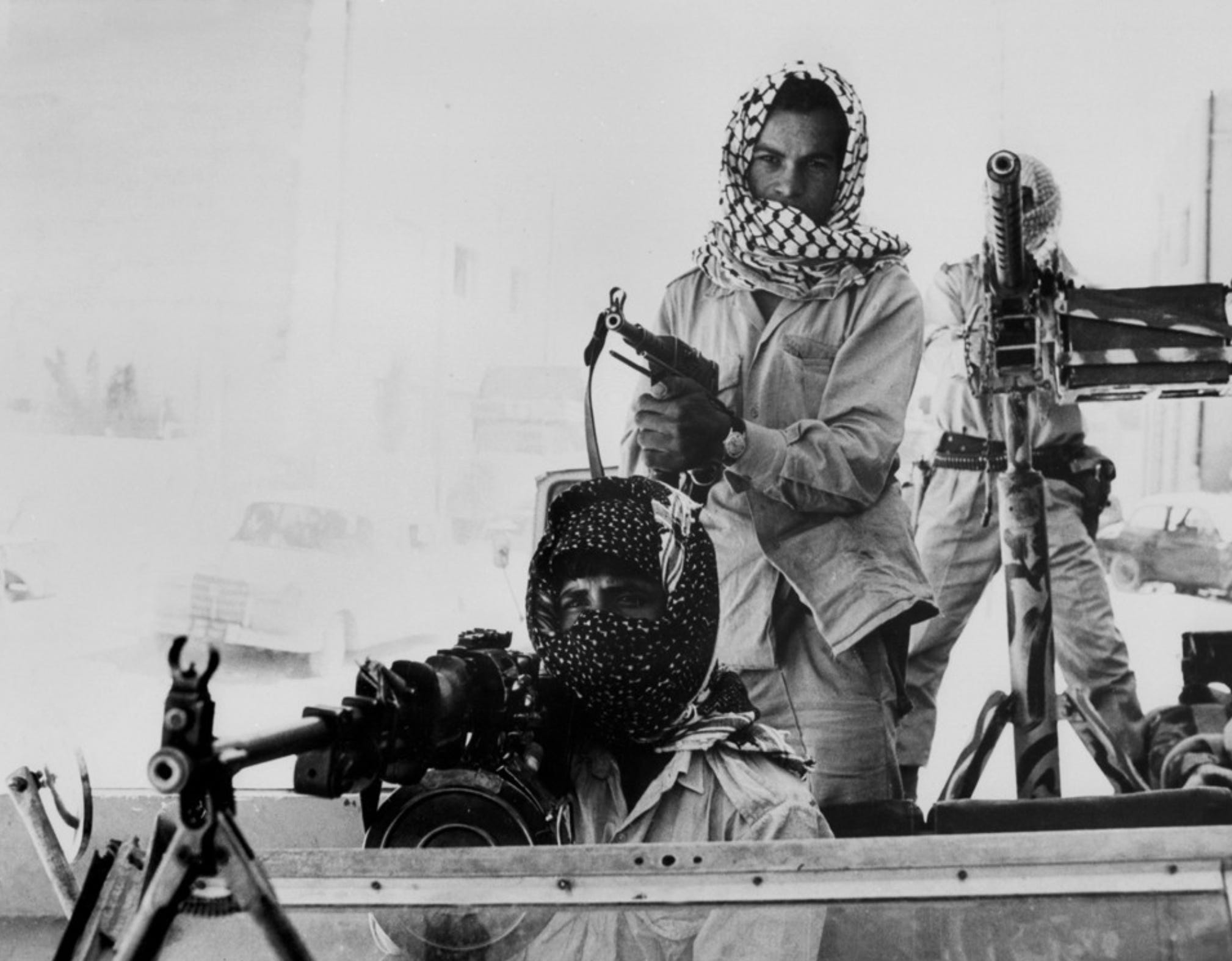 Starting in the 1930s, there was a focused effort by Arab leaders to make the keffiyeh a symbol of Palestinian resistance against colonial rule and dispossession, with an aim to make it a key element in the construction of a Palestinian national identity. However, the patterned keffiyeh did not get much traction as a useful symbol until the early 1970s, when it became synonymous not with Palestinian national identity, but with terrorist violence against Israel. Yasser Arafat, leader of Fatah and then the Palestine Liberation Organization (PLO), popularized the black and white keffiyeh by conspicuously wearing it in situations where it had no utility. He wore it draped over one shoulder, in a shape that mimicked the outline of the British Mandate of Palestine—a statement of his unrelenting dedication to “liberating” the land of its inhabitants, i.e. Jewish Israelis. Leila Khaled and the Popular Front for the Liberation of Palestine (PFLP) adopted the red and white keffiyeh as the emblem of their movement, which became visible to Westerners through a series of plane hijackings.